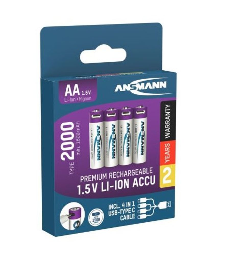 Ansmann 4-pak genopladelige AA-batterier – Li-ion 2000mAh med USB-C