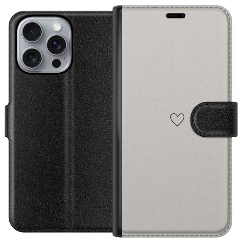 Apple iPhone 16 Pro Max Sort Tegnebogsetui Grått hjärta
