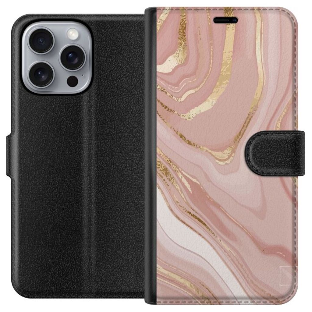 Apple iPhone 16 Pro Max Sort Tegnebogsetui Ljusrosa marmor