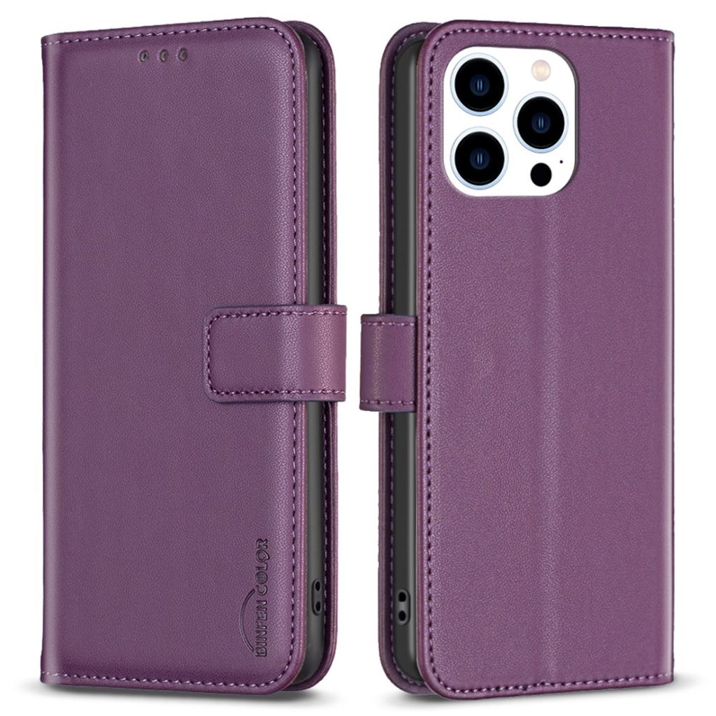 Tilføj stil og funktionalitet til din iPhone 14 Pro med dette elegante BINFEN COLOR Pungetui i mørklilla.