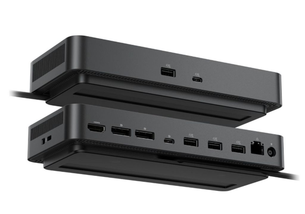 - Stik: 2 x DisplayPort 1.4, 1 x HDMI 2.1, 2 x USB-C 3.2 Gen 2, 4 x USB-A 3.2 Gen 2, 1 x RJ-45 Ethernet, 1 x DC-indgang, 1 x Kensington-lås