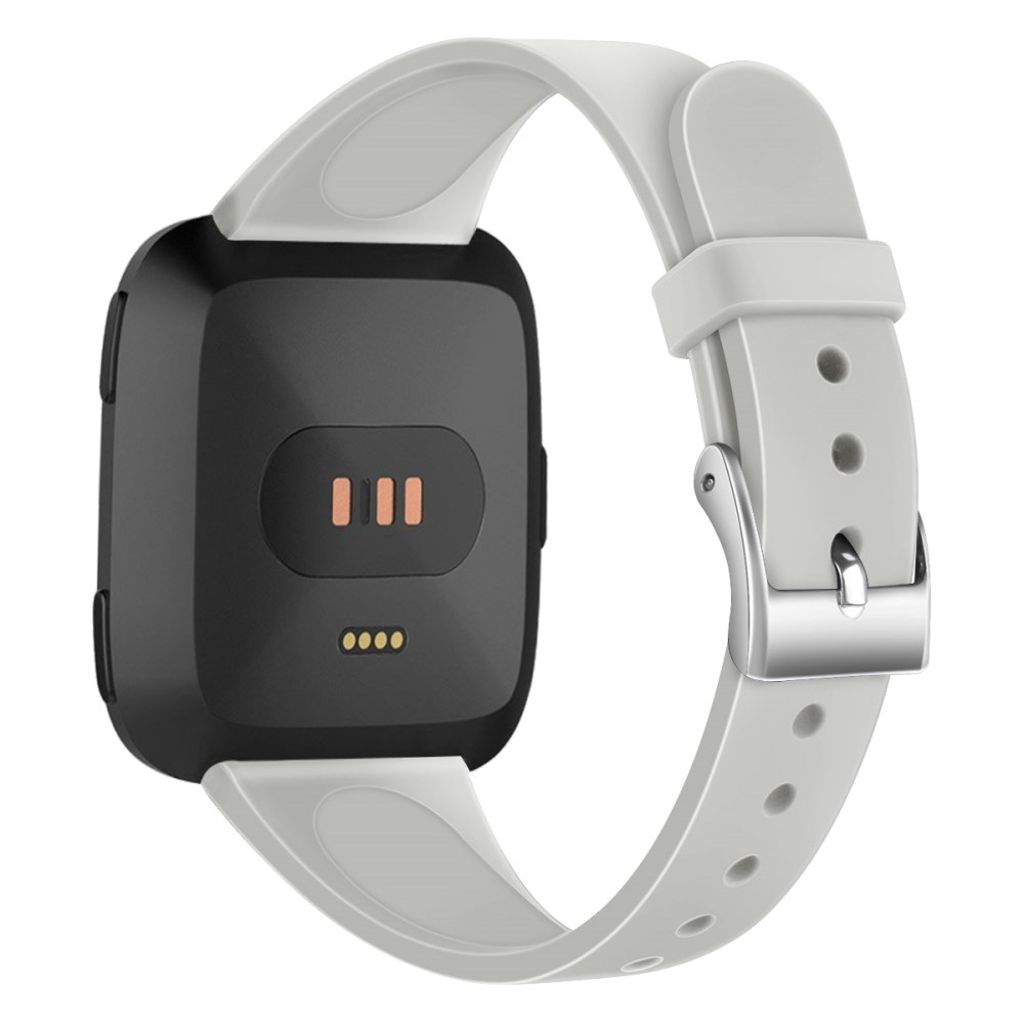 Opgrader din Fitbit Versa oplevelse med en grå silikone urrem, der kombinerer komfort og stil til daglig brug.