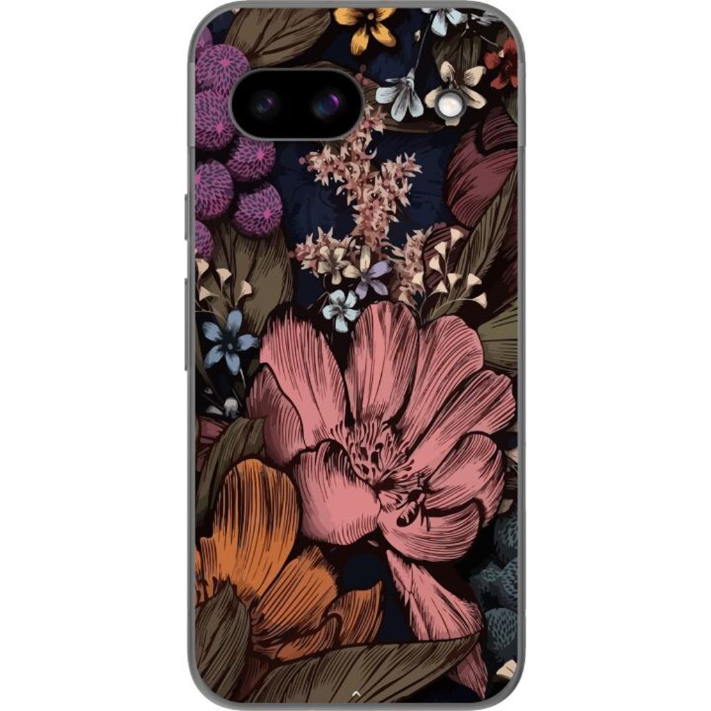 Google Pixel 8a Gennemsigtigt Telefoncover Tecknade blommor
