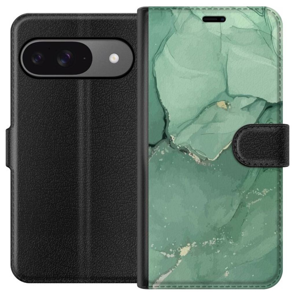 Google Pixel 9 Pro Sort Tegnebogsetui Grön Marmor