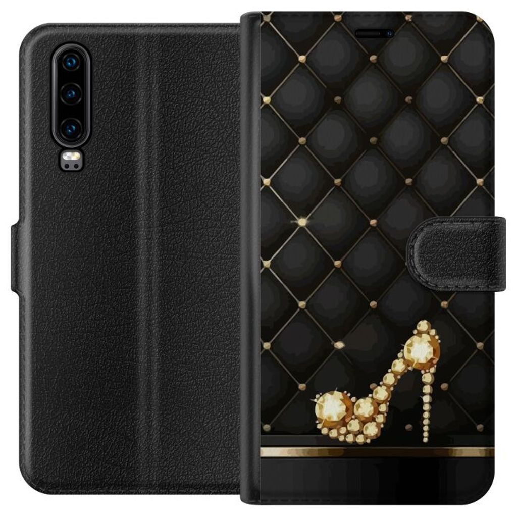 Huawei P30 Sort Tegnebogsetui Lyxig Sko