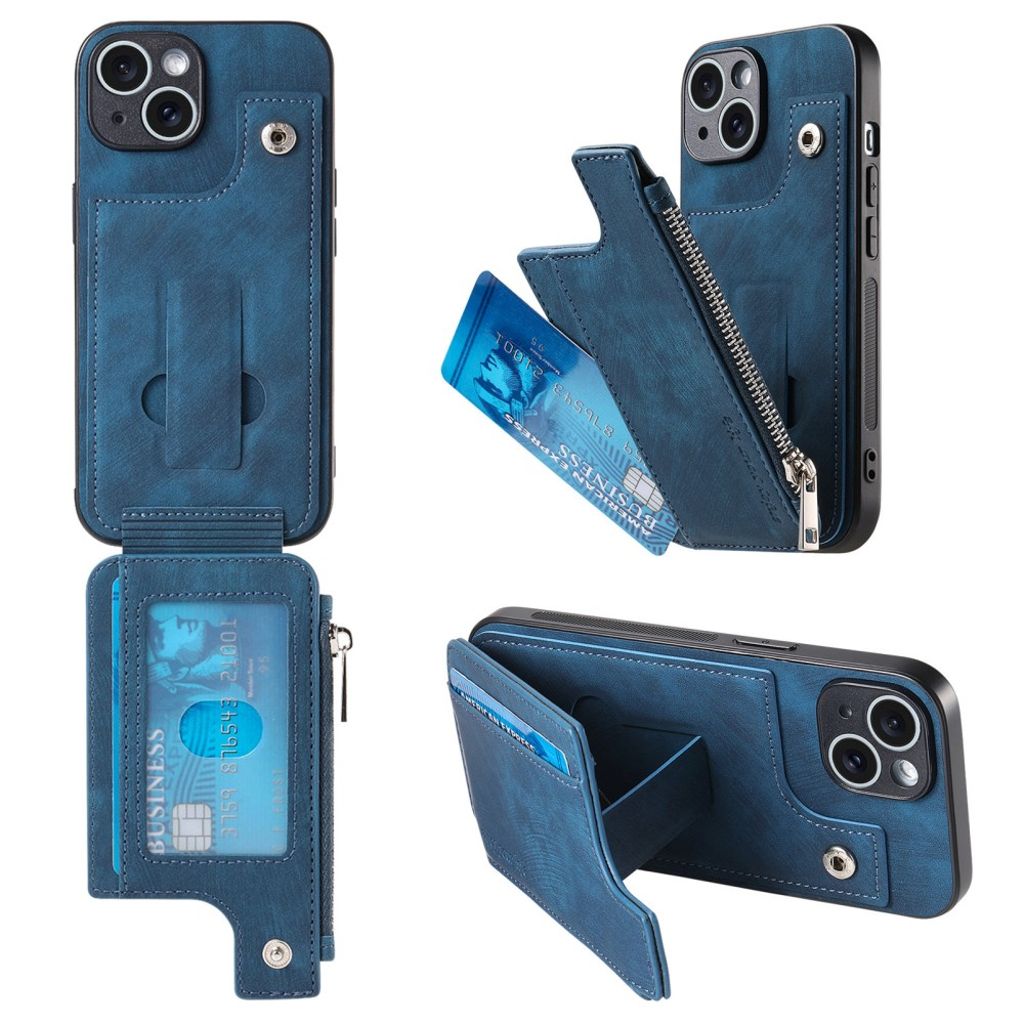 iPhone 14 Pungcover med Kortholder/Stativ – Blå