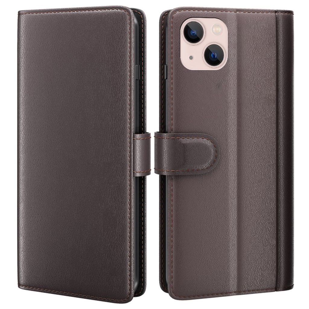 iPhone 14 Pungetui Ægte Læder Kortholder/Stativ - Brun