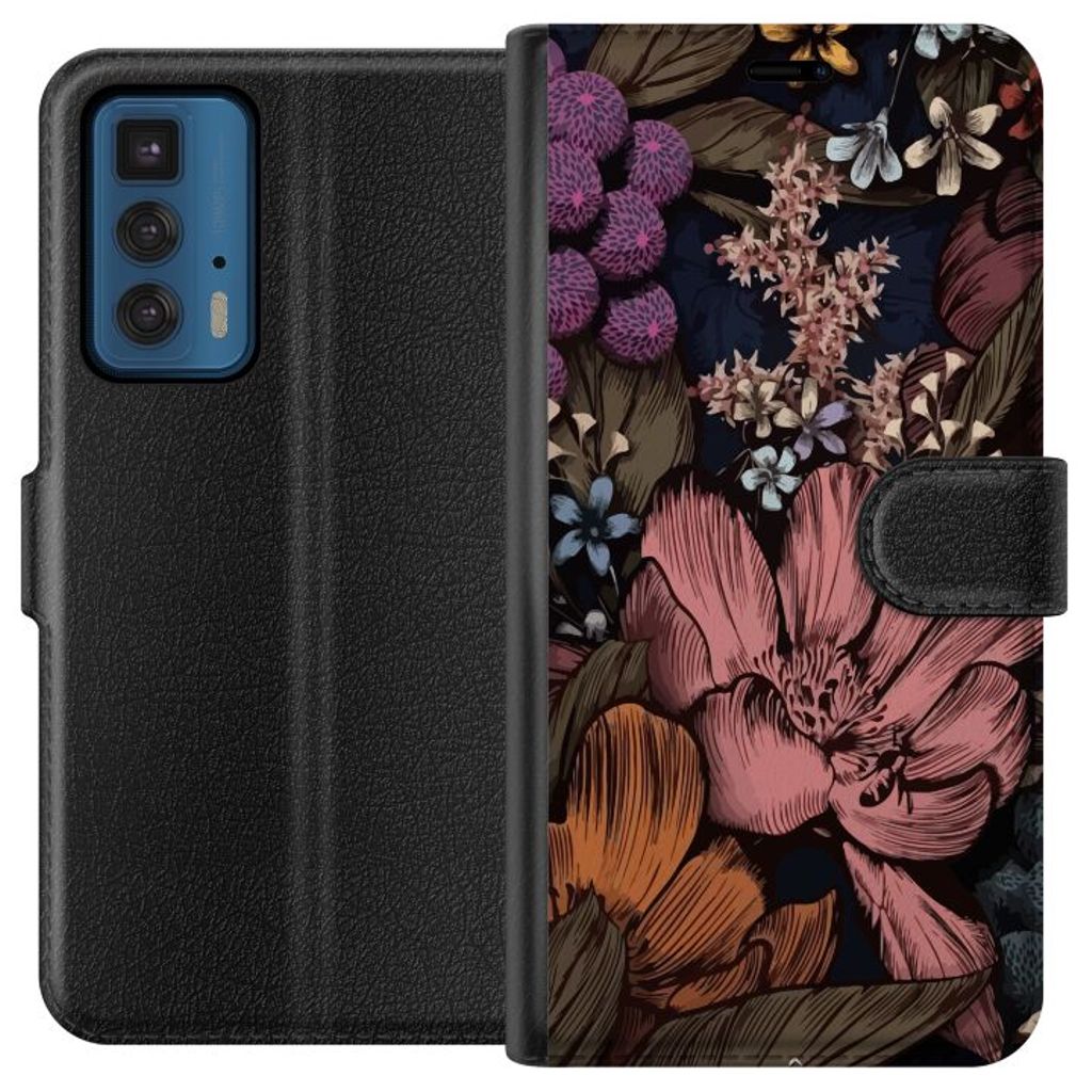 Motorola Edge 20 Pro Sort Tegnebogsetui Tecknade blommor