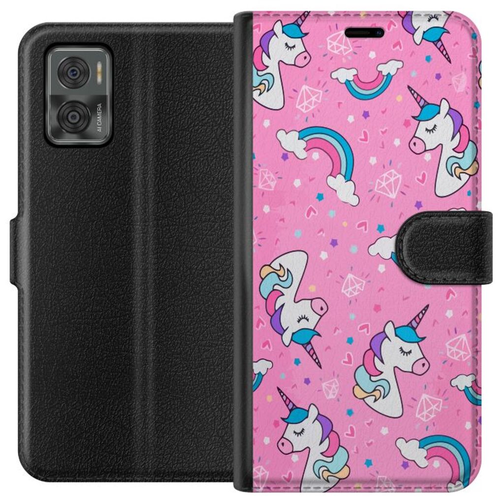 -Særligt designet til Moto E22i pung-etui. Æstetisk og funktionel: Enhörningar-mønster med en elegant farvekombination.