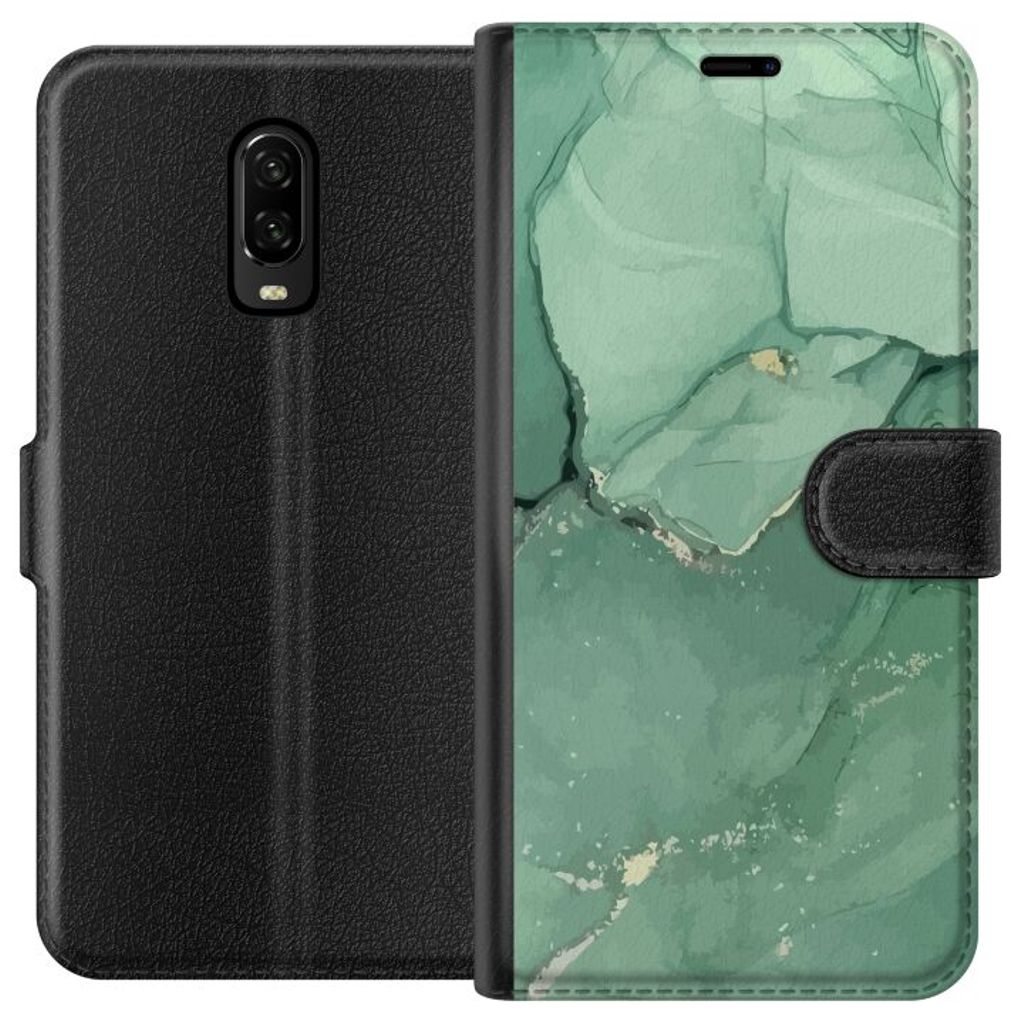 OnePlus 6T Sort Tegnebogsetui Grön Marmor
