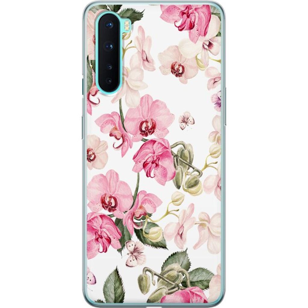 OnePlus Nord Gennemsigtigt Telefoncover Rosa blommor