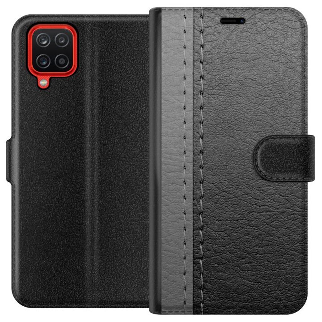 Samsung Galaxy A12 Sort Tegnebogsetui Grått Fake Läder