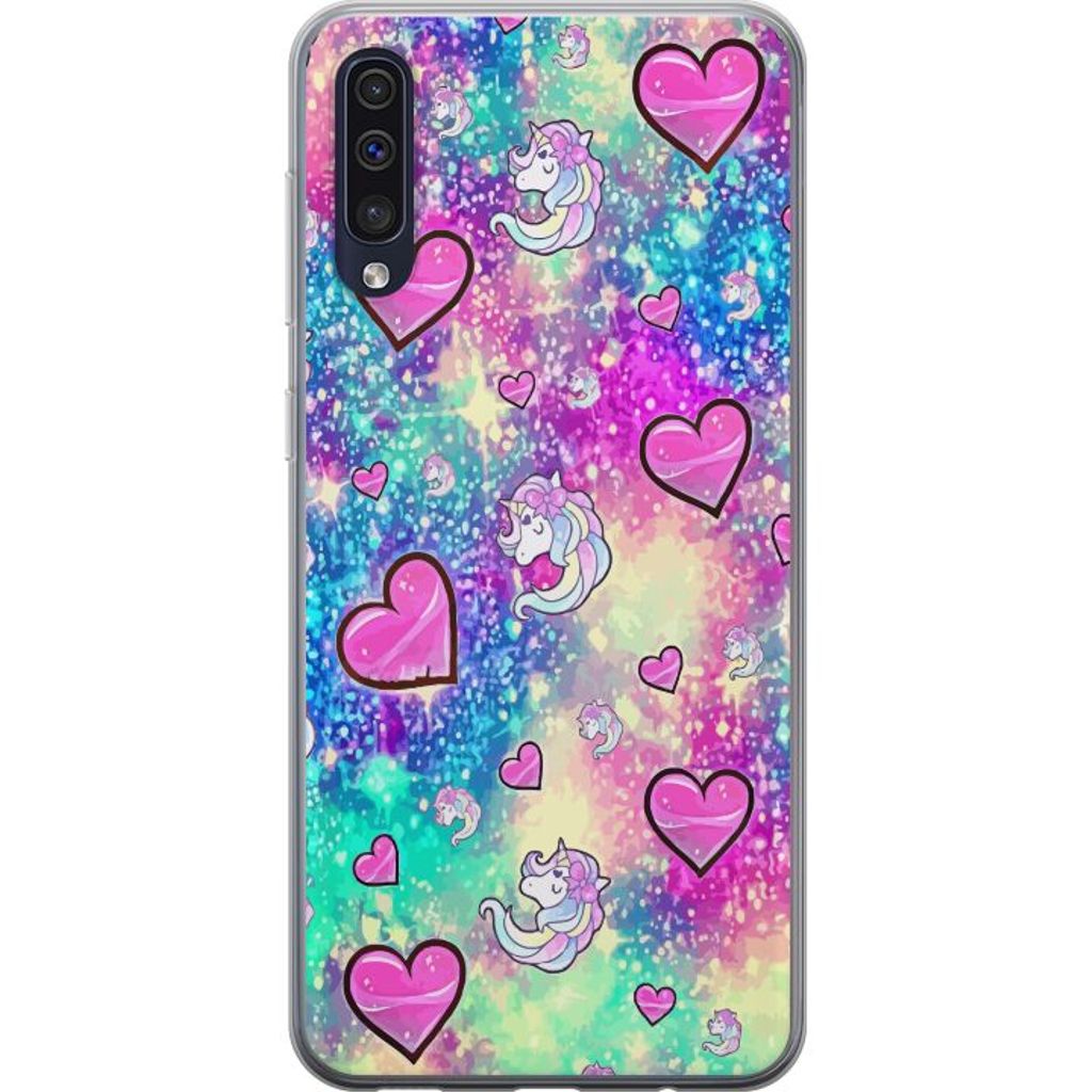 Samsung Galaxy A50 Gennemsigtigt Telefoncover Enhörning och hjärtan