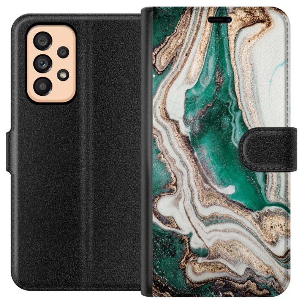 Samsung Galaxy A53 5G Sort Tegnebogsetui Grön / Guld marmor