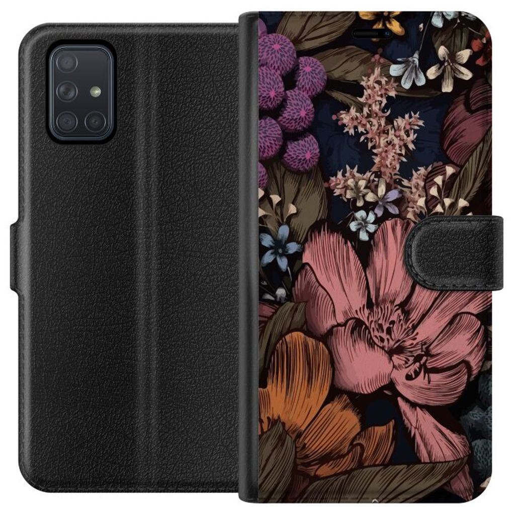 Samsung Galaxy A71 Sort Tegnebogsetui Tecknade blommor