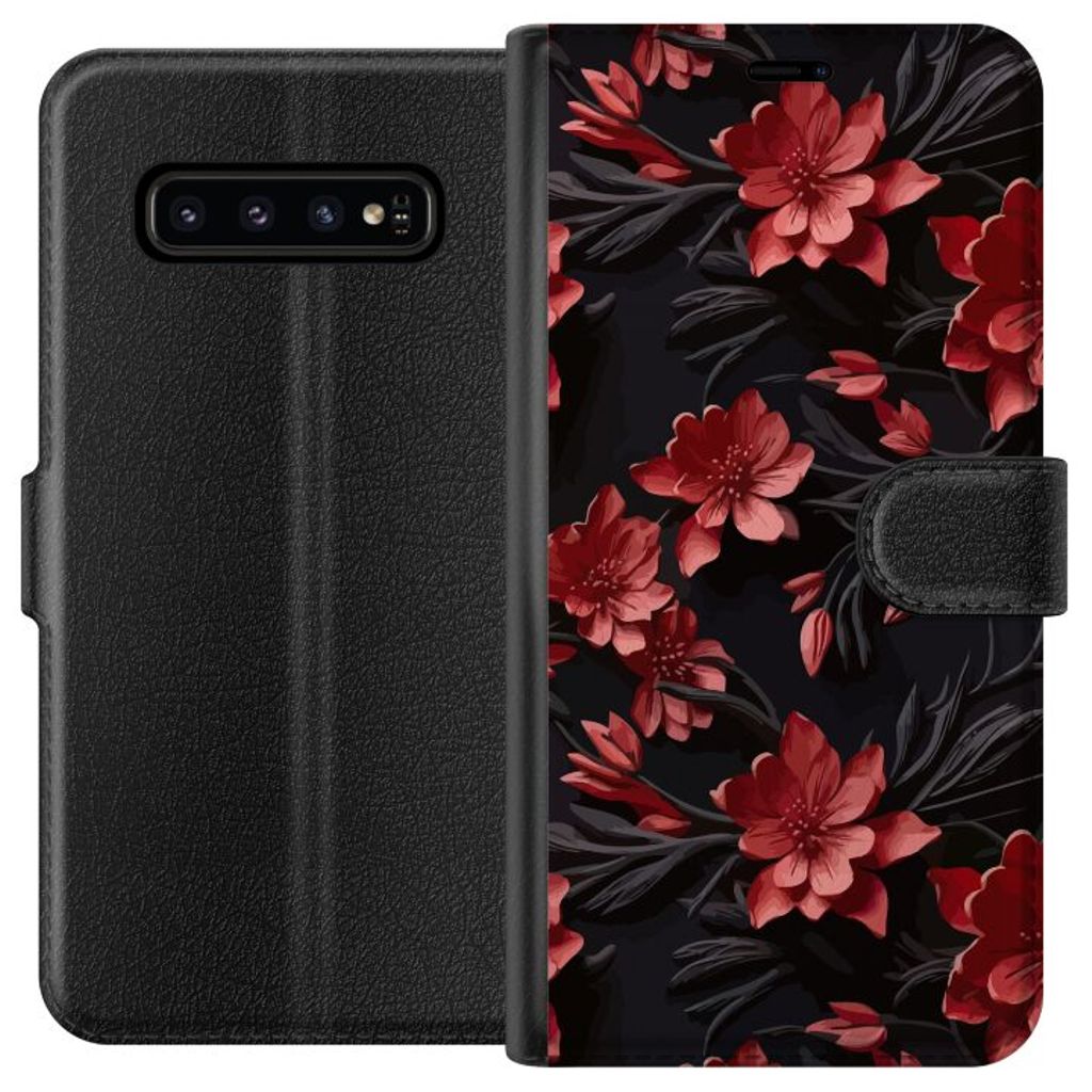 Samsung Galaxy S10 Sort Tegnebogsetui Intensiva blommor