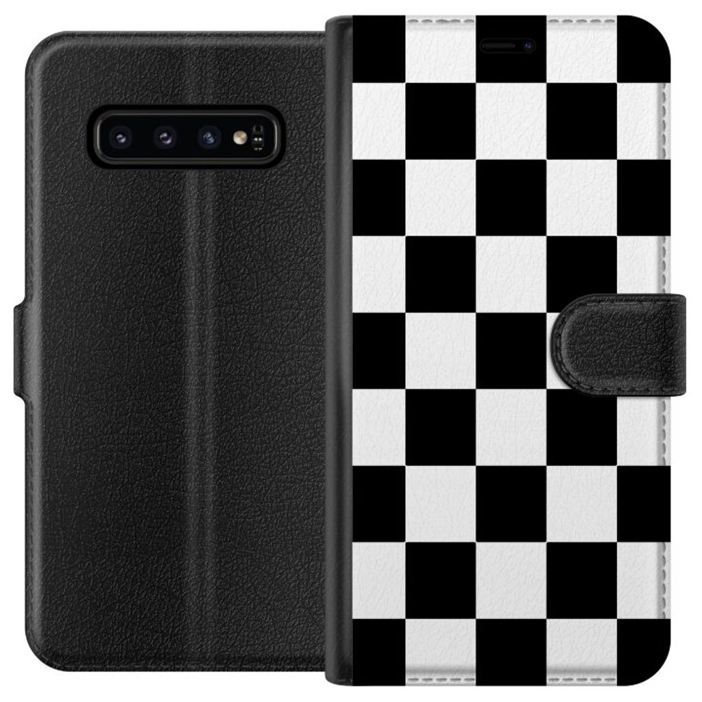 -Særligt designet til Galaxy S10 pung-etui. Æstetisk og funktionel: Svart och Vitt-mønster med en elegant farvekombination.