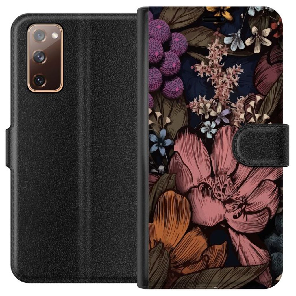 Samsung Galaxy S20 FE Sort Tegnebogsetui Tecknade blommor