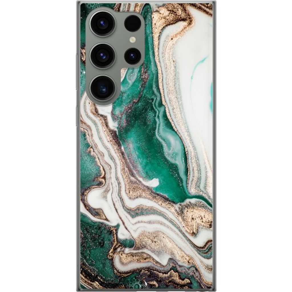 Samsung Galaxy S23 Ultra Gennemsigtigt Telefoncover Grön / Guld marmor