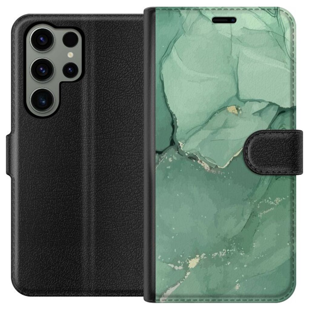 Samsung Galaxy S23 Ultra Sort Tegnebogsetui Grön Marmor