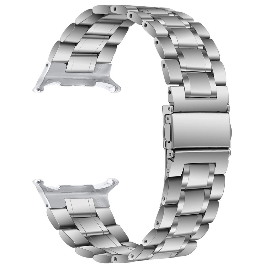 Opgrader din Samsung Galaxy Watch Ultra 47mm med dette elegante 5-led rustfri stål urrem i sølv. Remmen kombinerer slidstyrke og stil, perfekt til både arbejde og fritid.