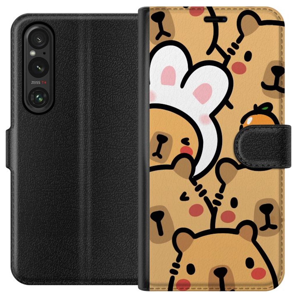 -Særligt designet til Xperia 1 V pung-etui. Æstetisk og funktionel: Kapivara-mønster med en elegant farvekombination.