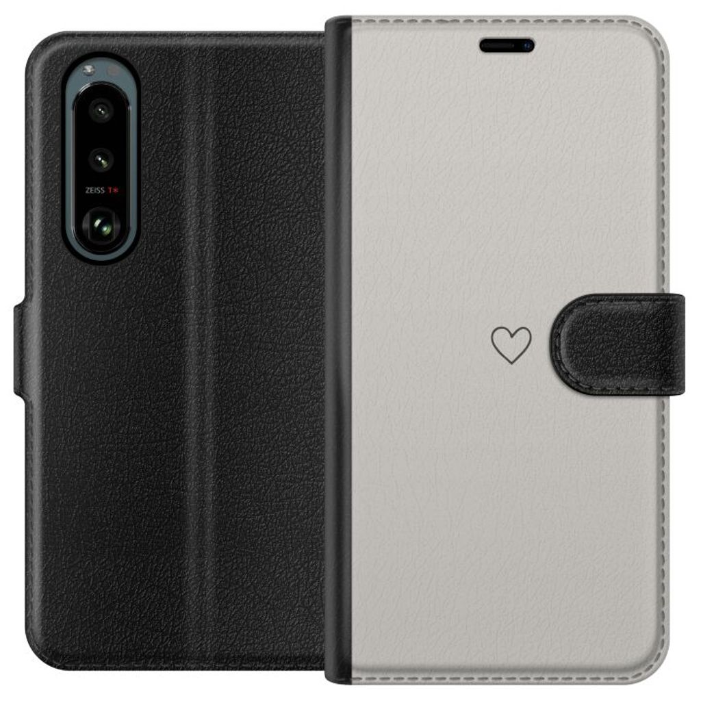 Sony Xperia 5 III Sort Tegnebogsetui Grått hjärta