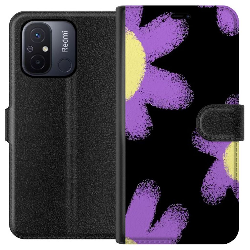 Xiaomi Redmi 12C Sort Tegnebogsetui Blomsterskrud