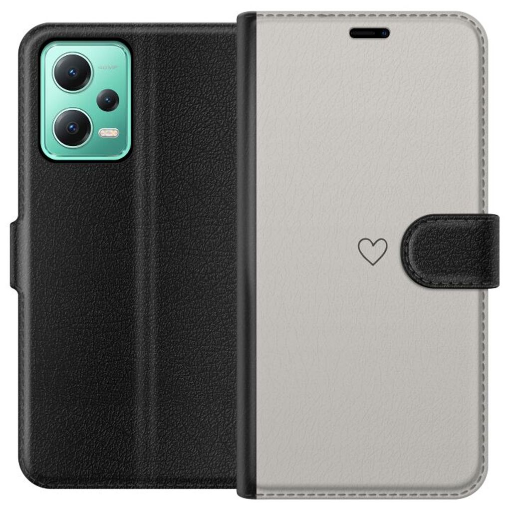Xiaomi Redmi Note 12 Sort Tegnebogsetui Grått hjärta